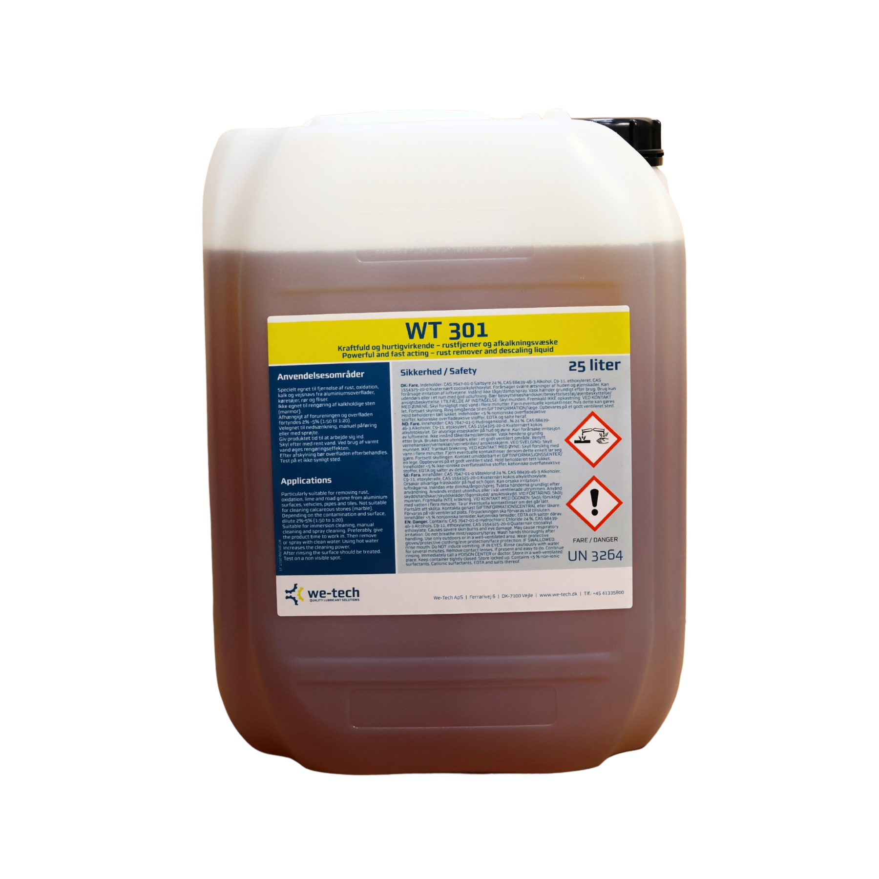 WT 301 er velegnet til industriel rengøring, hvor der kræves kraftig opløsning af kalk, rust, fedt og olie. Kan anvendes i industrimiljøer og vedligeholdelsesopgaver, hvor stærk syrebaseret rengøring er nødvendig.