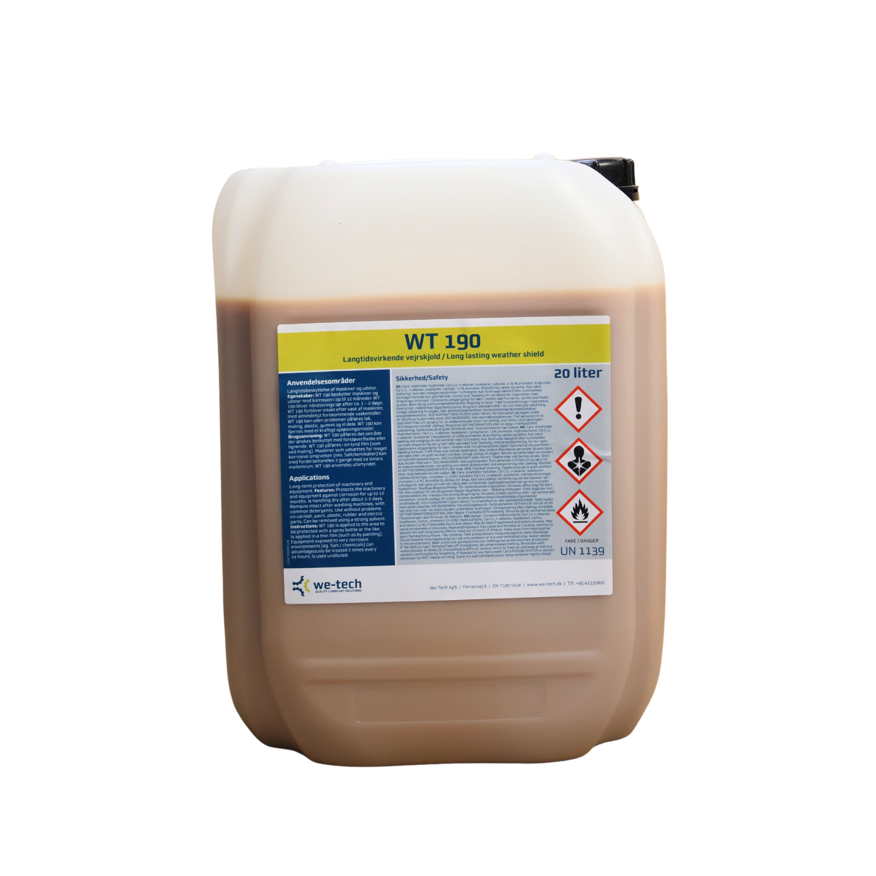 WT 190 er en specialudviklet beskyttelsesolie, der giver maskiner og udstyr effektiv rust- og korrosionsbeskyttelse i op til et år – selv under krævende forhold og højtryksrensning.